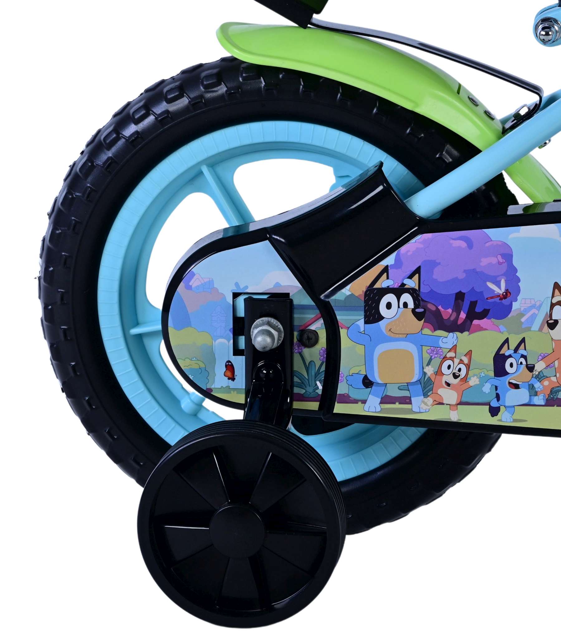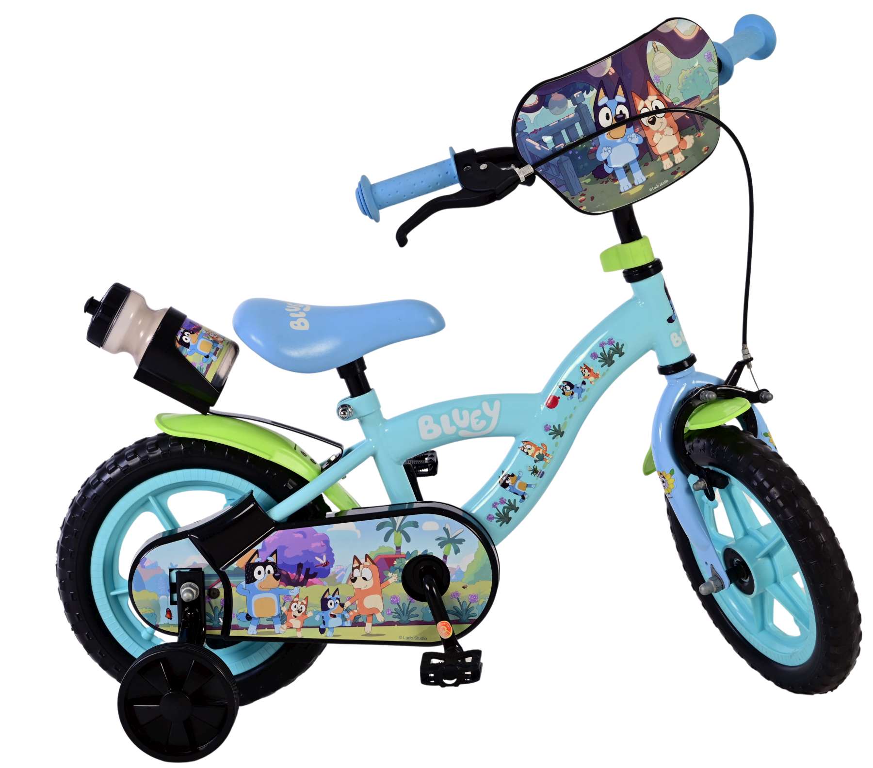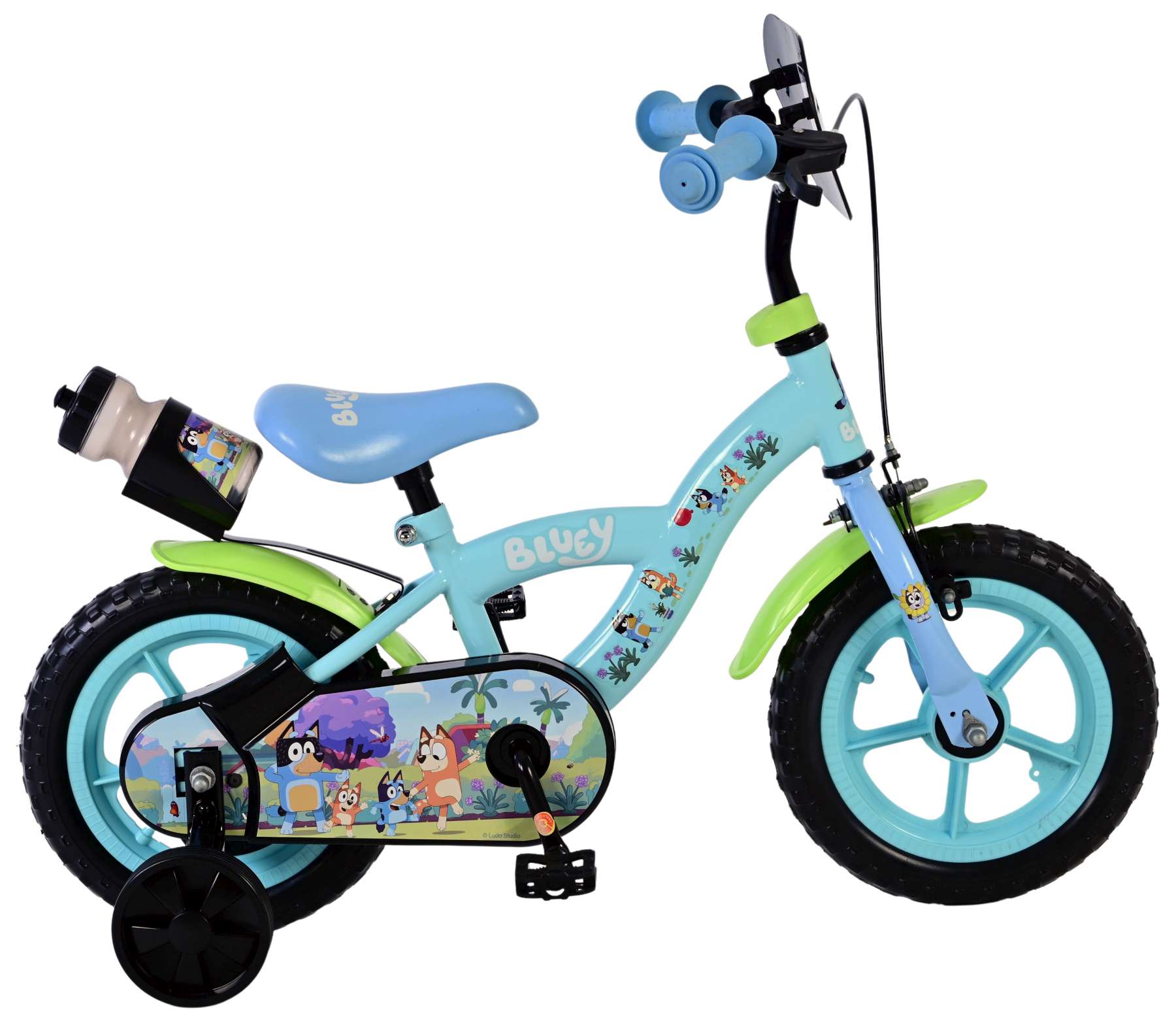 Voor extra stabiliteit tijdens het leren fietsen is de Volare Bluey fiets voorzien van afneembare zijwielen, die later eenvoudig verwijderd kunnen worden wanneer het kind zelfstandig kan fietsen. Het meegeleverde drinkflesje maakt de fiets compleet en is perfect voor onderweg of tijdens het buitenspelen.