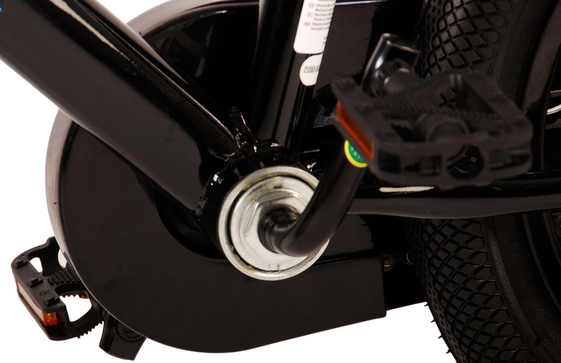 Veiligheid staat voorop! Daarom heeft deze gave fiets een handrem en terugtraprem, een gesloten kettingkast en afneembare zijwieltjes. Daarnaast heeft de fiets reflectoren in de wielen, voor- en achterop de fiets en een leuke bel. Ook aan het comfort is gedacht. De mooie zwarte Volare fiets met blauwe accenten heeft een zacht zadel, een tijdloos design, en een uniek frame dat wel tegen een stootje kan. Om zo lang mogelijk van de fiets te kunnen genieten zijn het zadel en stuur in hoogte verstelbaar. Wordt geleverd inclusief al het montagemateriaal dat nodig is om de fiets in elkaar te zetten!