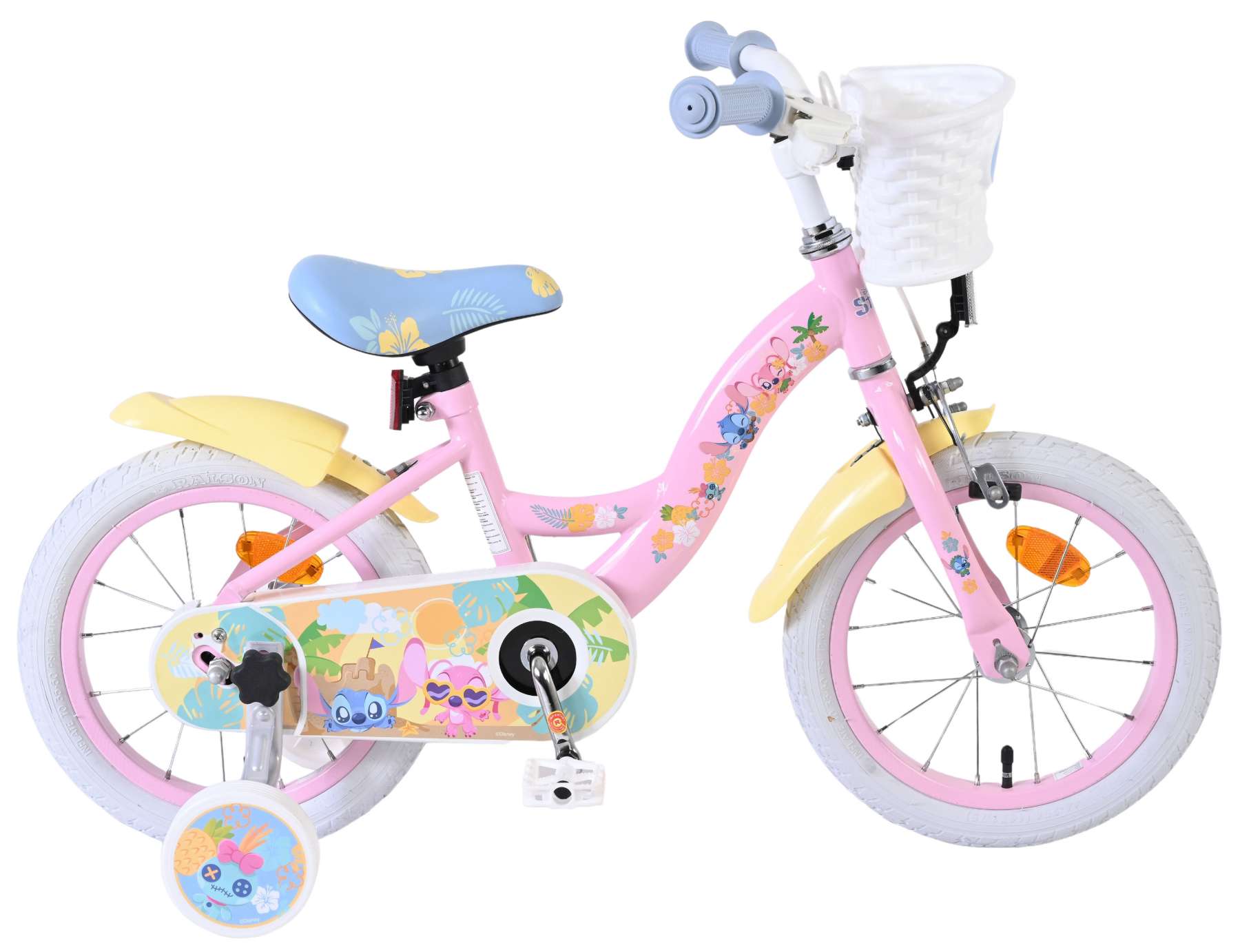 Veiligheid staat voorop! Daarom heeft deze gave fiets een handrem, terugtraprem en afneembare zijwieltjes. Daarnaast heeft de fiets reflectoren in de wielen voor- en achterop de fiets. Ook aan het comfort is gedacht. De mooie roze Stitch fiets is voorzien van een mandje. Om zo lang mogelijk van de fiets te kunnen genieten zijn het zadel en stuur in hoogte verstelbaar.