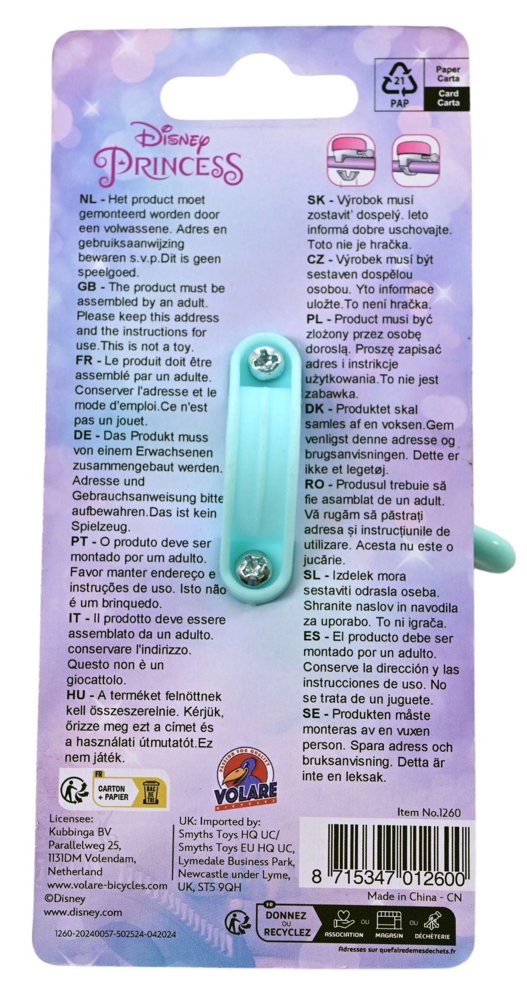 Deze Disney Princess Fietsbel is geschikt voor kinderen van 3 - 12 jaar.