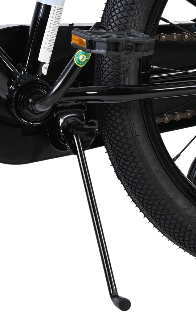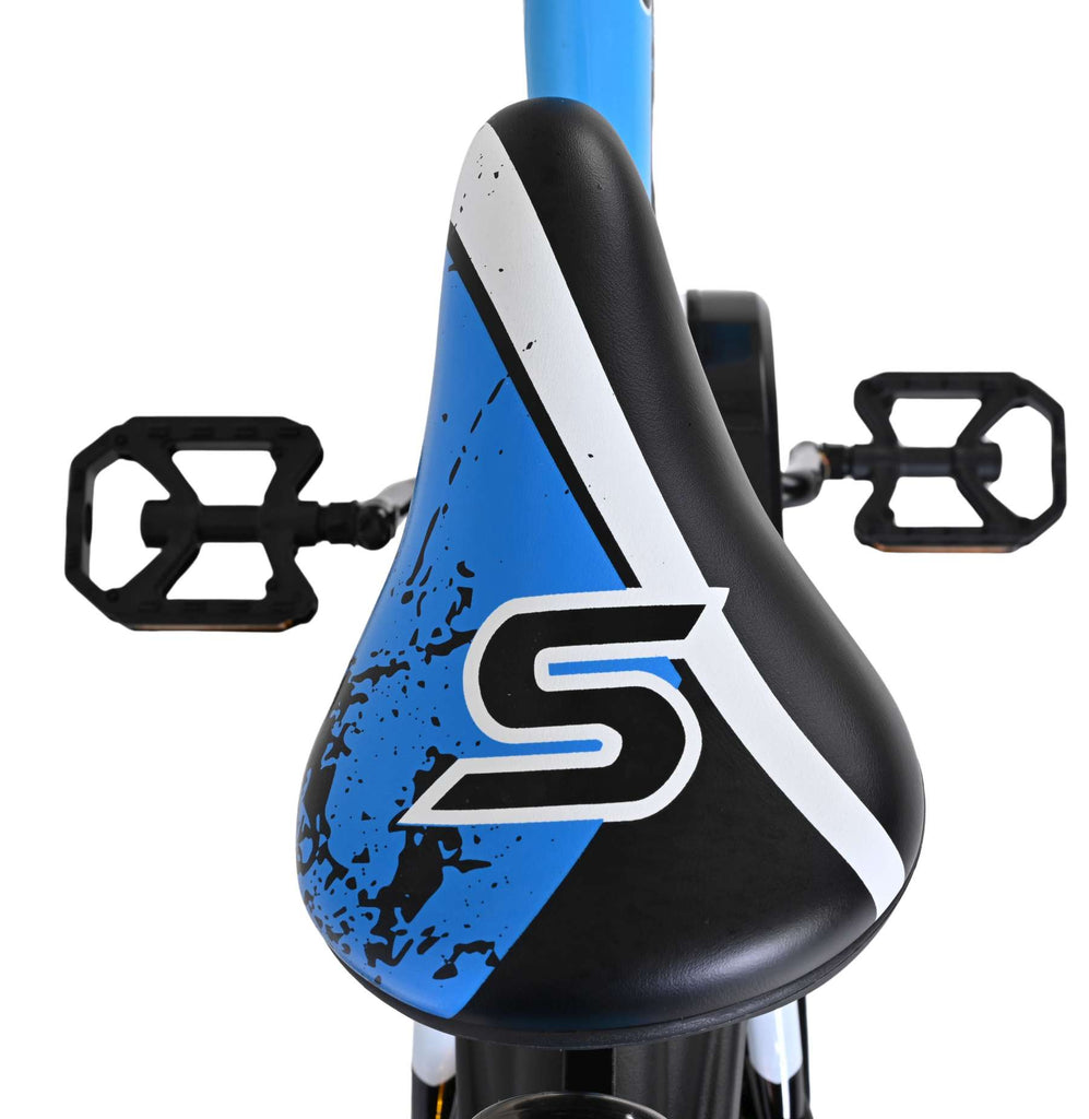 Veiligheid staat voorop! Het sterke stalen frame heeft met de stoere blauw/zwarte kleurstelling een zeer sportieve uitstraling. Met de bidon in de praktische bidonhouder heeft uw kind altijd iets te drinken bij zich. De spatborden houden al het opspattend vuil tegen. Om vaart te minderen heeft de fiets zowel een hand- als terugtraprem. Ter bescherming van de kleine vingertjes is de kettingkast gesloten. De fiets heeft zijwielen en een stevige standaard.
