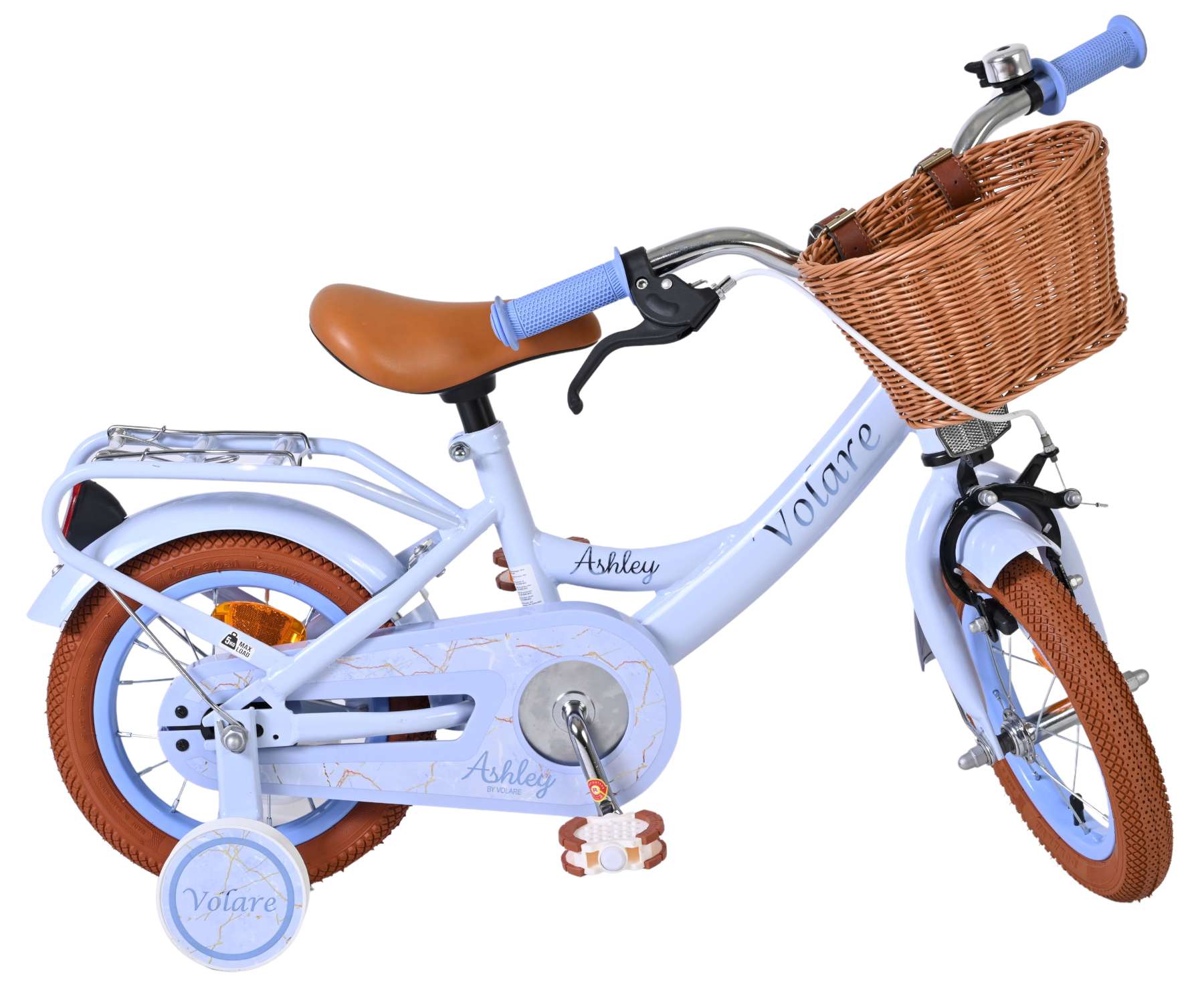 Ook aan comfort en gebruiksgemak is gedacht. De fiets heeft een leuk mandje aan de voorkant om spulletjes in mee te nemen en een stevige achterdrager voor nog meer gemak. Met zijn frisse blauwe kleur en complete uitrusting is de Volare Ashley 12 inch kinderfiets de perfecte fiets voor elke eerste fietservaring.