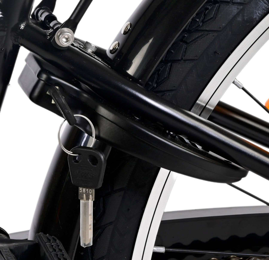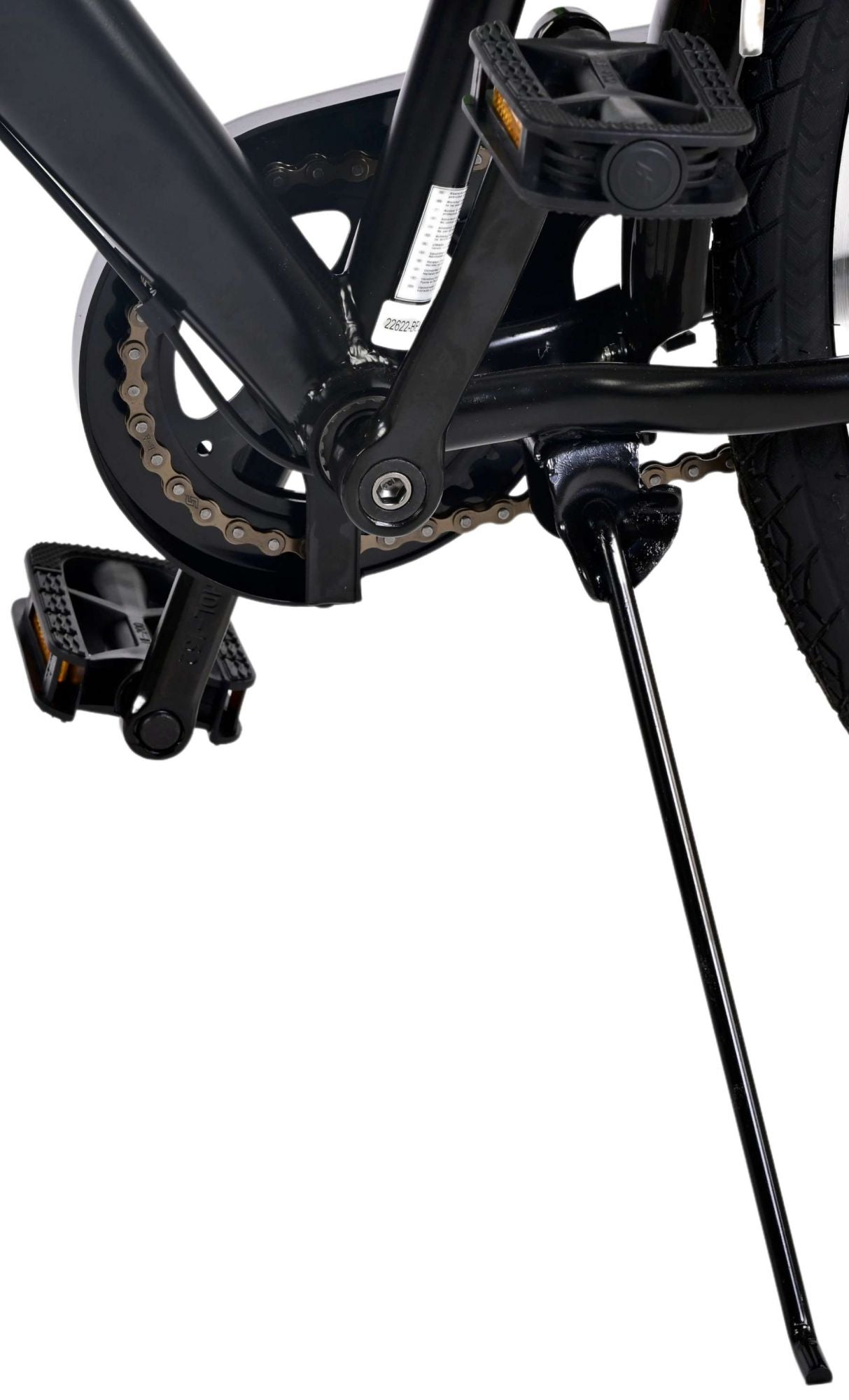 Veiligheid staat voorop! Daarom heeft deze gave fiets een handrem en terugtraprem en verlichting op batterij voor en achter. Daarnaast heeft de fiets een leuke bel en reflectoren in de wielen. Ook aan het comfort is gedacht. De mooie zwarte Volare fiets met groene accenten heeft een luxe zacht zadel, 3 versnellingen van Shimano, extra zachte handvaten, een handige achterdrager, en een stevig frame dat wel tegen een stootje kan. Verder heeft de fiets een standaard zodat hij netjes blijft staan en een sterk slot. Om zo lang mogelijk van de fiets te kunnen genieten heeft deze een extra lange zadelpen waardoor de fiets nóg langer met het kind meegroeit en ook het stuur is in hoogte verstelbaar.