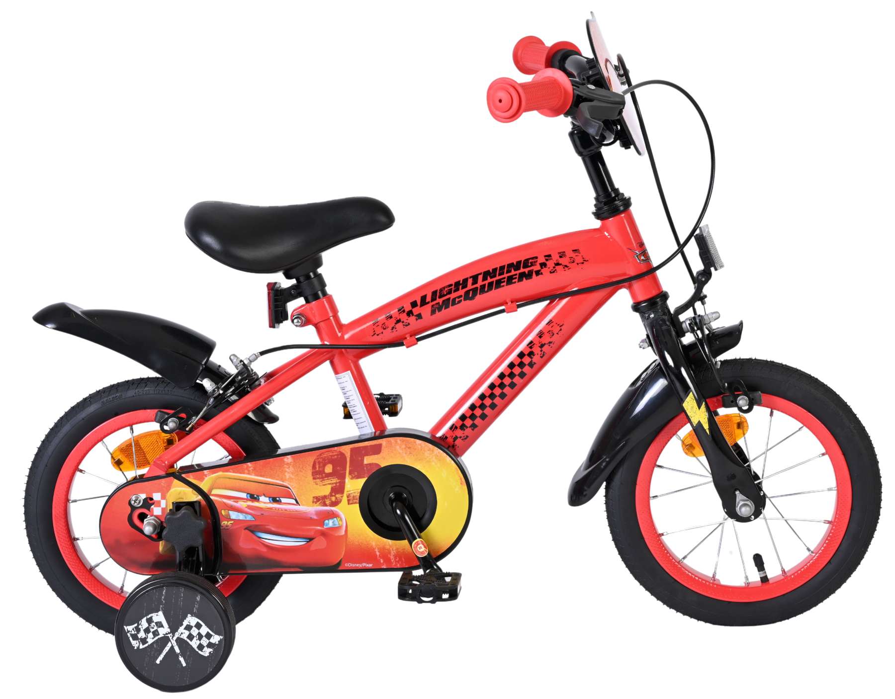 Veiligheid staat voorop! Daarom heeft deze gave fiets twee handremmen (geen terugtraprem) en een gesloten kettingkast. Daarnaast heeft de fiets afneembare zijwieltjes om snel te leren fietsen en reflectoren in de trappers. Ook aan het comfort is gedacht. De mooie rode Cars fiets heeft een bedrukt zacht zadel. Om zo lang mogelijk van de fiets te kunnen genieten zijn het zadel en stuur in hoogte verstelbaar. Kortom: een topkwaliteit fiets voor een geweldige prijs!