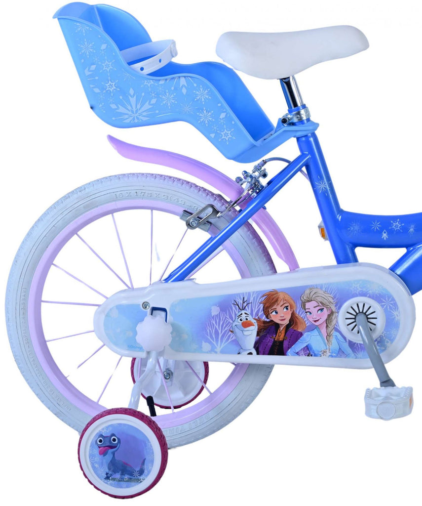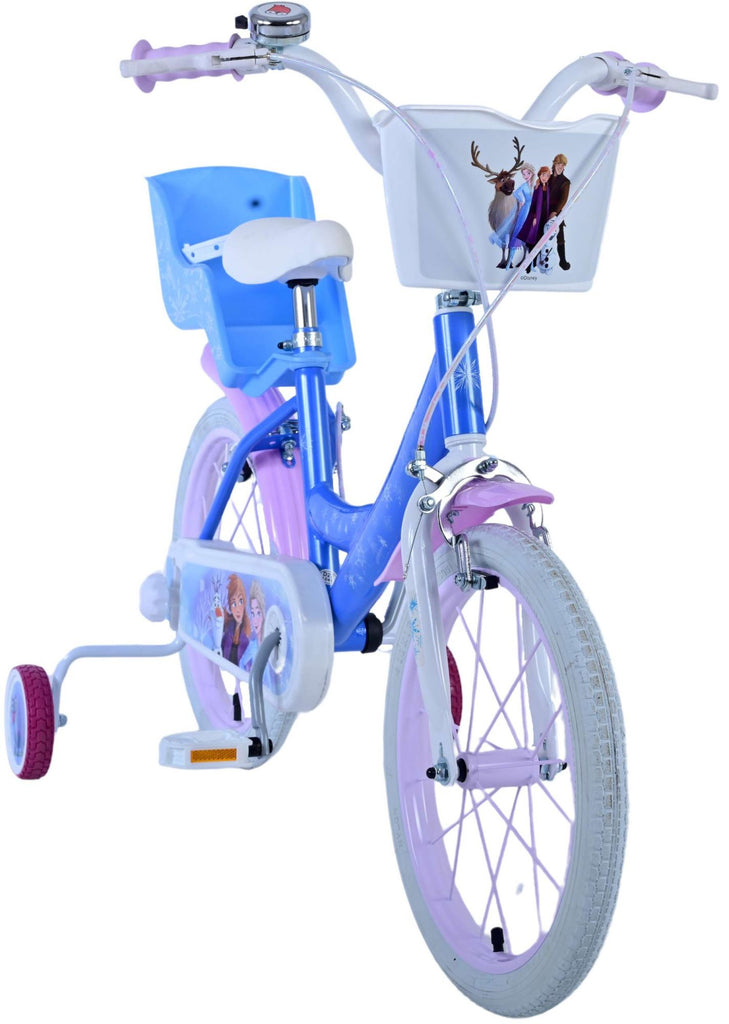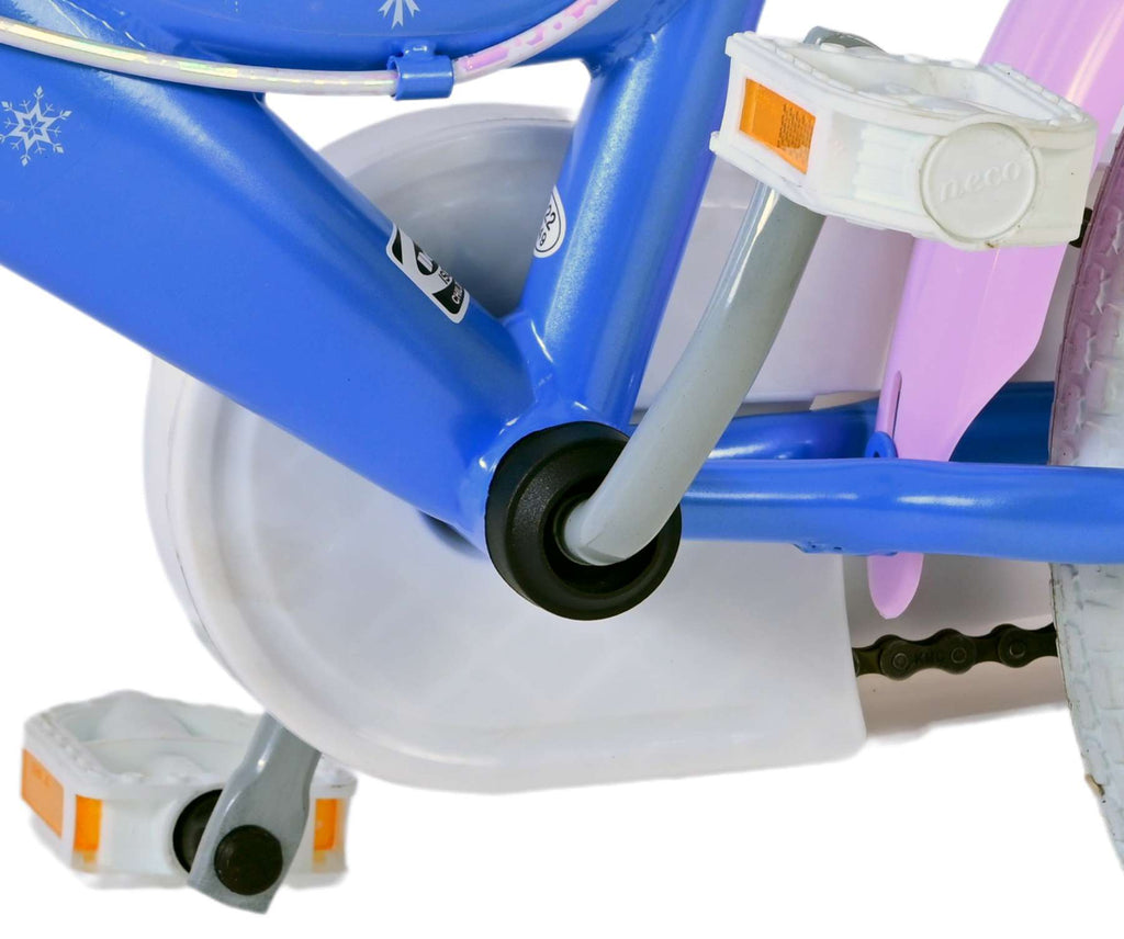 Veiligheid staat voorop! Daarom heeft deze gave fiets geen terugtraprem maar twee handremmen, een gesloten kettingkast en afneembare zijwieltjes. Maar ook aan het comfort is gedacht! De mooie blauwe Frozen fiets met witte accenten heeft een zacht zadel, een handig poppenzitje, een bel op het stuur, en een super stevig frame. Om zo lang mogelijk van de fiets te kunnen genieten zijn het zadel en stuur in hoogte verstelbaar. Kortom; een topkwaliteit fiets voor een scherpe prijs!