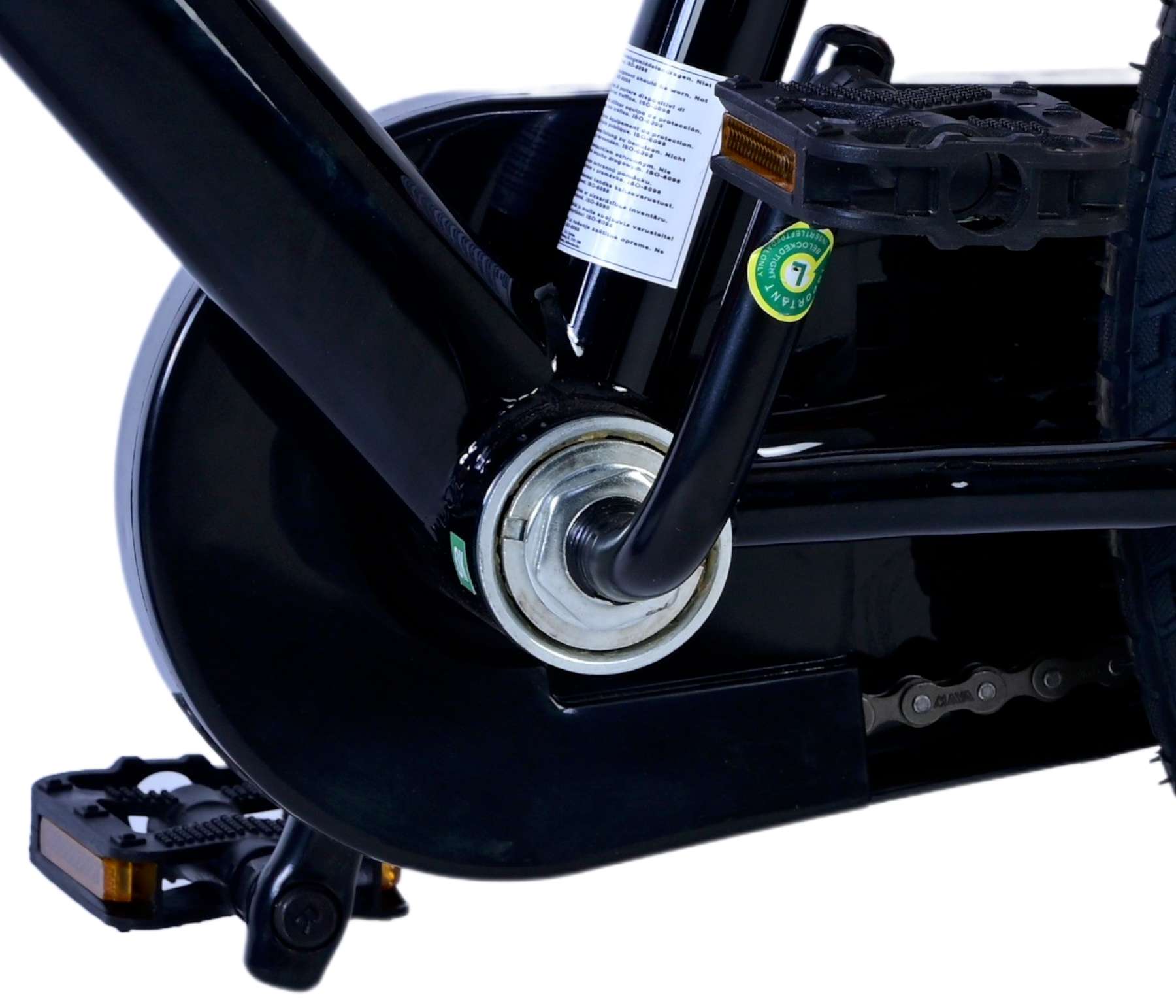 Veiligheid staat voorop! Daarom heeft deze gave fiets twee handremmen (geen terugtraprem) en een gesloten kettingkast. Daarnaast heeft de fiets afneembare zijwieltjes om snel te leren fietsen en reflectoren in de trappers. Ook aan het comfort is gedacht. De mooie zwarte Hot Wheels fiets met blauw en oranje accenten heeft een aangenaam zacht zadel en een extra stevig frame dat wel tegen een stootje kan. Om zo lang mogelijk van de fiets te kunnen genieten is het zadel in hoogte verstelbaar. Kortom: een topkwaliteit fiets waar uw kind nog jaren van kan genieten!