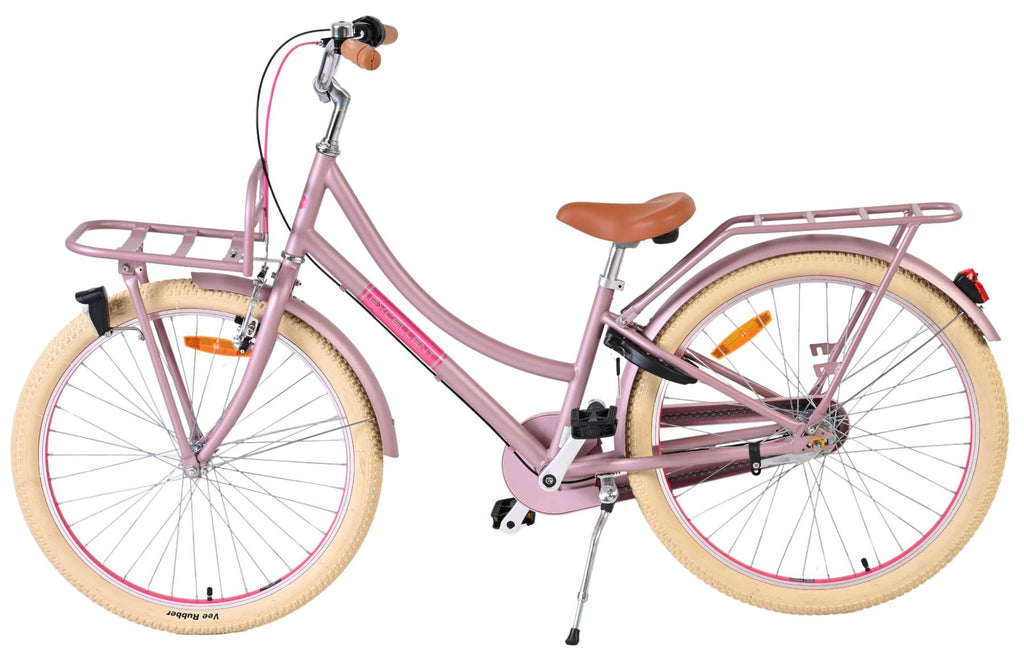 De Volare Excellent 24 inch meisjesfiets met 3 versnellingen is de ideale mix van stijl, comfort en functionaliteit. Het matroze frame geeft de fiets een moderne en stoere uitstraling, terwijl het praktische voorrek perfect is om een schooltas of andere spullen mee te nemen.