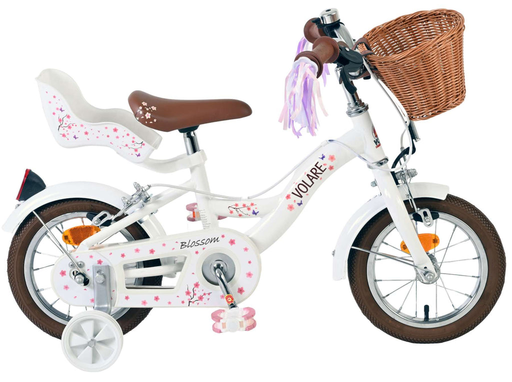 Veiligheid staat voorop! Daarom heeft deze gave fiets géén terugtraprem maar twee handremmen, afneembare zijwieltjes en een gesloten ketiingkast. De fiets heeft reflectoren van voor, achter en in de wielen. Ook aan het comfort is gedacht. De mooie witte Blossom fiets heeft een comfortabel zadel, een poppenzitje, een rieten mandje en vrolijke handvatstreamers om de fiets op te fleuren. Om zo lang mogelijk van de fiets te kunnen genieten zijn het zadel en stuur in hoogte verstelbaar.