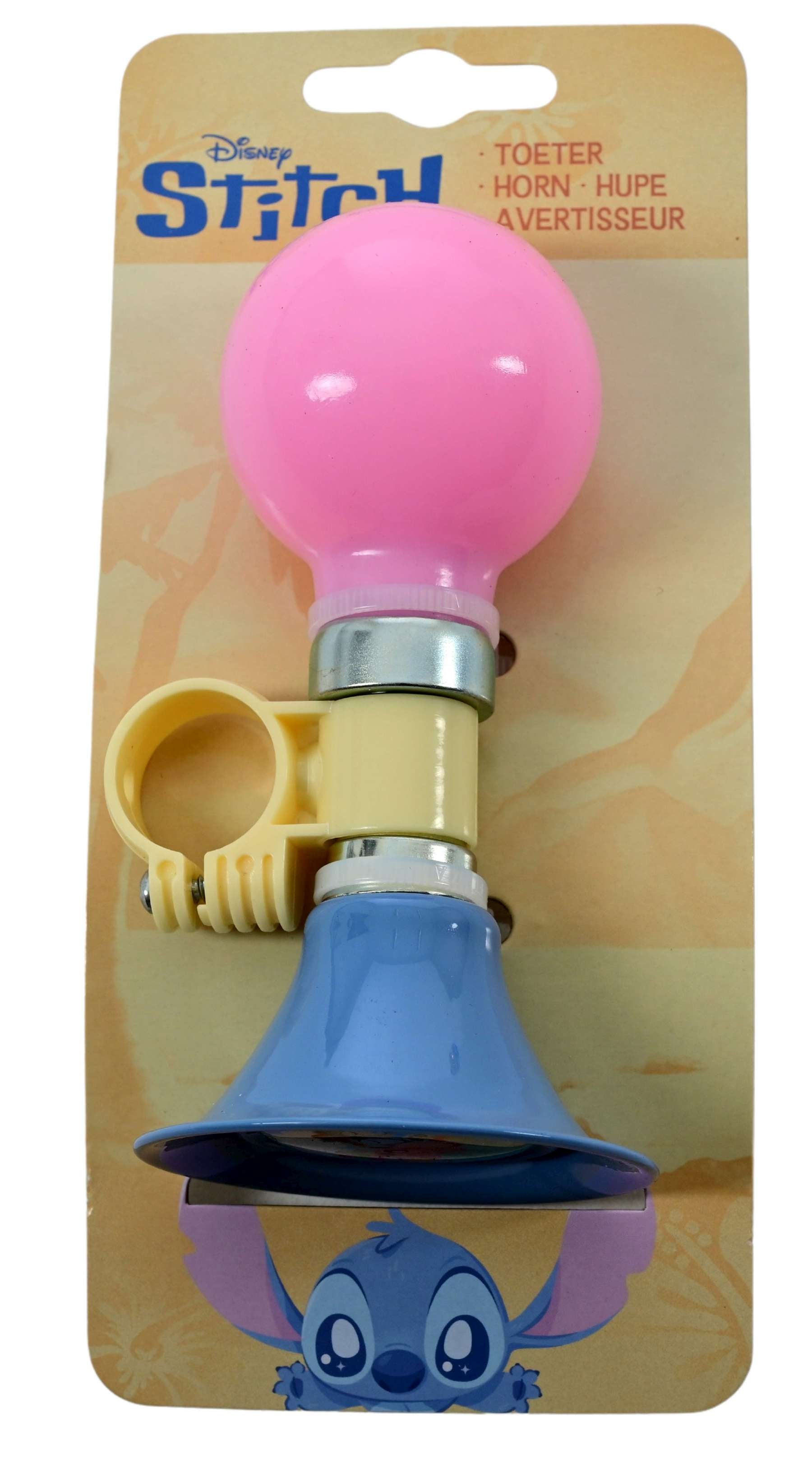 Met deze kleurrijke Disney Stitch toeter valt je kind gegarandeerd op! De toeter heeft een schattige afbeelding van Stitch en is uitgevoerd in een zachte roze kleur met pastelgele details. Perfect voor kleine fans van dit ondeugende buitenaardse vriendje!