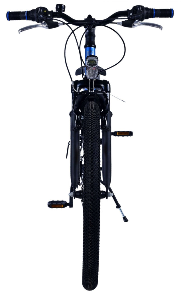 Veiligheid staat voorop! Daarom heeft deze gave fiets 2 handremmen en geen terugtraprem! Daarnaast heeft de fiets 21 versnellingen van shimano met revoshifters, reflectoren in de wielen, reflectoren voor en achter op de fiets, een bel, verlichting op batterijen voor en achter. De gekantelde stuurpen zorgt voor een beter zicht op de weg, maar is daardoor niet in hoogte verstelbaar. Ook aan het comfort is gedacht. De mooie satijn grijze Volare fiets met blauwe accenten heeft een comfortabel zacht zadel, een standaard zodat je fiets netjes blijft staan, en stoere extra brede banden. Om zo lang mogelijk van de fiets te kunnen genieten heeft de fiets een extra lange zadelpen waardoor de fiets nóg langer meegroeit.