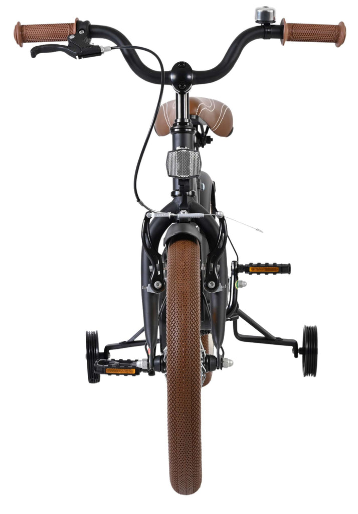 Veiligheid staat voorop! Daarom heeft deze gave fiets een handrem en een terugtraprem, een gesloten kettingkast en afneembare zijwieltjes. Daarnaast heeft de fiets een leuke bel. Ook aan het comfort is gedacht. De mooie zwarte Volare fiets met bruine accenten heeft een zacht zadel, een tijdloos design, en een uniek frame dat wel tegen een stootje kan. Om zo lang mogelijk van de fiets te kunnen genieten zijn het zadel en stuur in hoogte verstelbaar.
